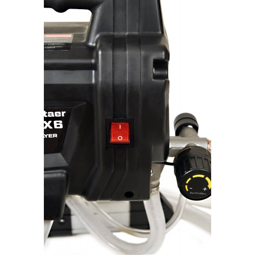 Окрасочный аппарат SCHTAER Mars X6 1.4 л — оптимальное решение для отделочных работ внутри и снаружи помещений, предназначенное для окрашивания небольших объектов, таких как квартиры, дачи, коттеджи, заборы и бани. Модель подходит для распыления стандартных лакокрасочных материалов низкой и средней вязкости, обеспечивая экономичный расход благодаря соплу, которое предотвращает разбрызгивание краски. Аппарат работает без компрессора, что упрощает его использование.